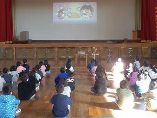 本年は、新型コロナウイルス感染症対策のため各教室で分散して開催することにしました。流れは、日南市歌斉唱、紙芝居(小村寿太郎、小倉処平、海幸山幸の中から1つ)、学年発表上映、感想、校歌斉唱で行います。