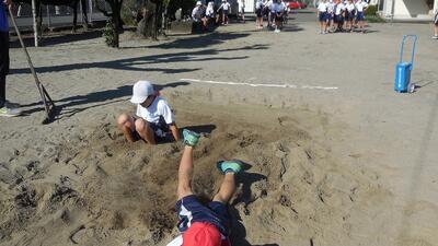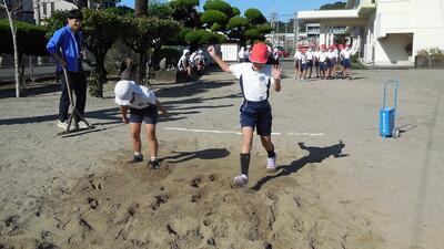 5年生は、体育で「走り幅跳び」を学習しています。