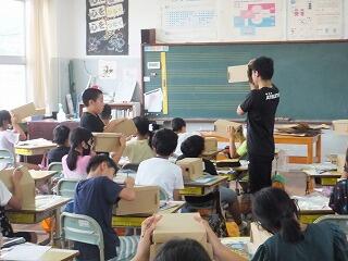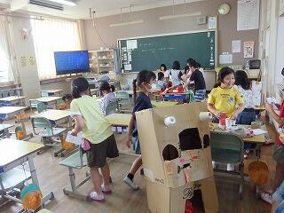 生活科でおもちゃづくりをしています。おもちゃ祭りは、7月21日の予定だそうです。でっかいおもちゃもあります。楽しみですね。