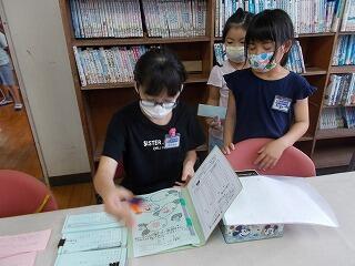低・中・高学年別に、問題はそれぞれ4問ずつ。1問正解するごとに、スタンプがもらえ、4問全部終わると折り紙かしおりのプレゼントがもらえます。子どもたちは、夢中になって、挑戦していました。