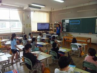 また、保健委員会では、毎日給食時間に、今日の温度や湿度、熱中症指数などを発表して、昼休みに外で遊ぶときの注意を言ってくれます。他の子どもたちもよく聞いて、気を付けて遊んでいるようです。