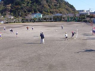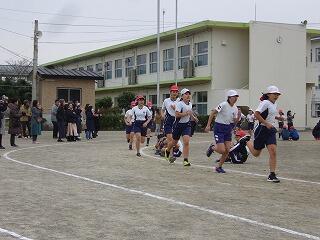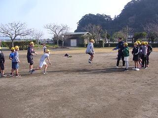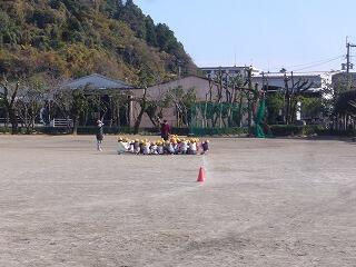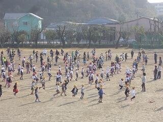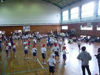 試合は、学級対抗(1組対2組)、子ども対大人、6年生対先生です。