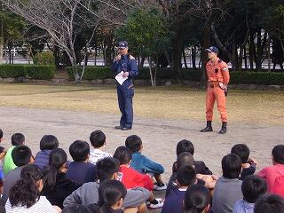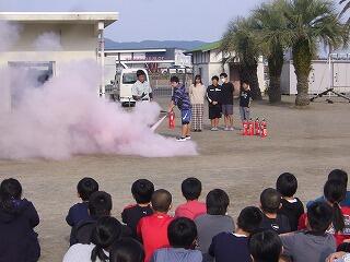また、児童4名、教師1名が代表として、消火器を使った消火訓練を行いました。