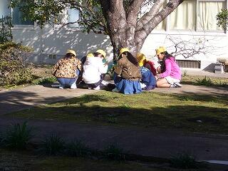 その向こうには、冬のヘチマを観察している子どもたちが見えました。