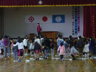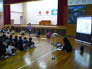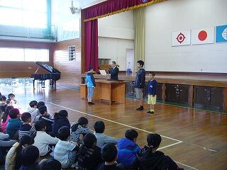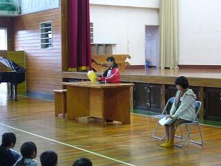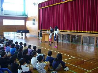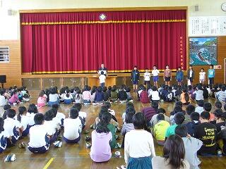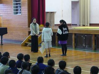当日発表を聴くことができなかった全校児童の前で発表しました。
