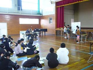 音楽室にいくと、5年生が合唱や合奏等の発表をしていました。