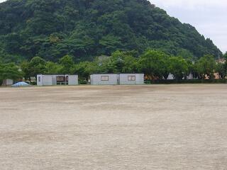 17日(土)に、運動場の端にプレハブが設置されました。