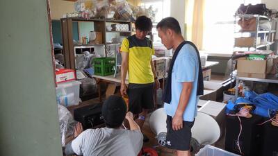 8月24日(木)に、台風の影響を受けたヘチマ観察園の復旧作業を、専門である宮崎県理科アドバイザーの2名の方に来校いただき、行っていただきました。