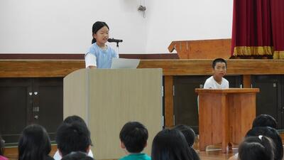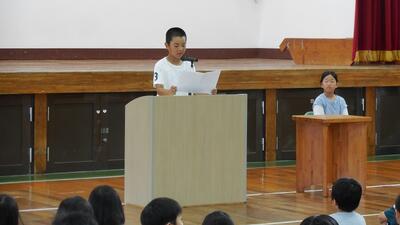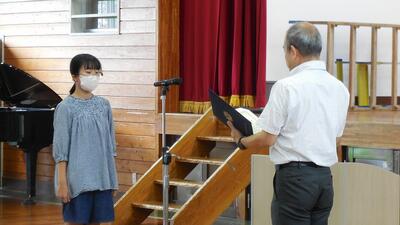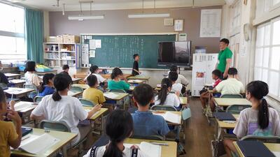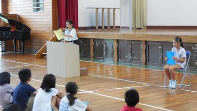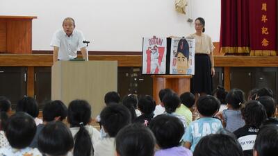 担任の先生から渡される通知表と、夏休みに向けて何かを続けてがんばることの大切さについて、大谷選手が小学校時代に続けていたことを例にしたお話がありました。