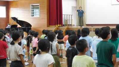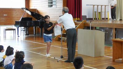 音楽の時間に、練習している校歌を、これまでにないぐらい大きな声で元気に歌ってくれました。校歌を、元気はつらつ歌う油津健児、最高です。(伴奏:竹井 柚葉さん)