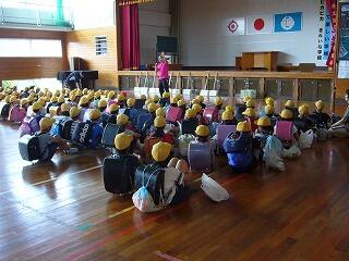 まず、教室で指導を受けた後、避難の放送を聞きます。