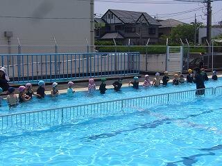小学校で泳ぐのは初めてですから、着替えの仕方、洋服の置き方、準備運動、プールへの入り方など、一つ一つ丁寧に教えてもらっていました。