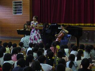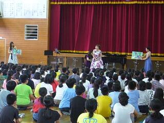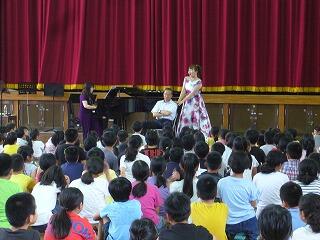 ピアノの素敵な音色、体育館に響き渡る歌声に子どもたちは静まりかえり、集中して耳を傾けていました。