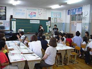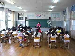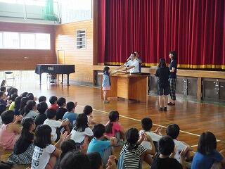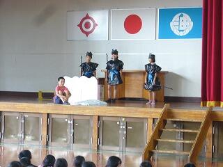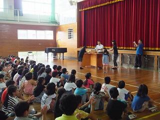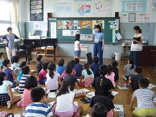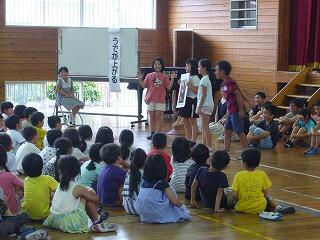 子どもたちが飽きないように紙芝居を見せたり、校長先生に演技をしていただいたりしながら歌うなどの工夫をしてくださいました。