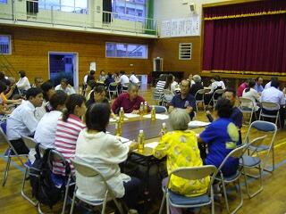 校長、PTA会長の挨拶、説明後に、「油津健児の健全育成に向けた取組について」という協議題のもと、各地区ごとに児童のよい点や気になる点、危険箇所等について話し合いました。