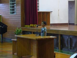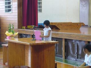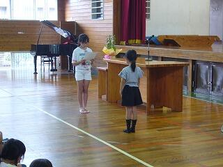 1校時の始業式では、4年生の2人が2学期の目標を発表しました。