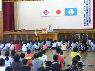 生徒指導主事からは、「友達に好かれる人になるために、元気・明るい・やさしいを心がけよう」という話がありました。
