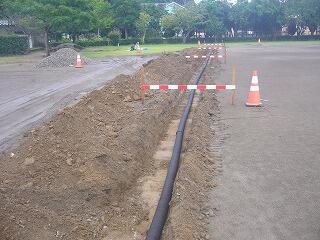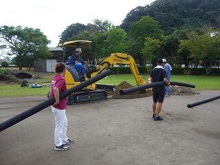 これで運動場に排水用のネトロンパイプを3箇所入れたことになります。