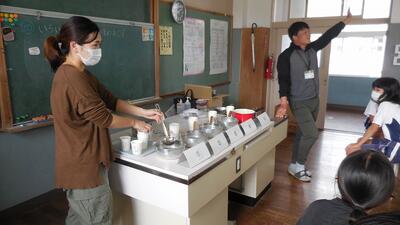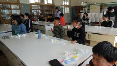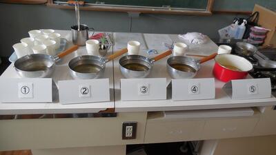 5年生は、家庭科の授業で「いろいろなだしを味わおう」を学習しています。