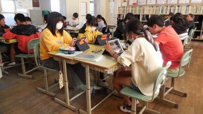 6年生は、国語の時間に「日南市のよいところ」を改めてタブレットで調べています。
