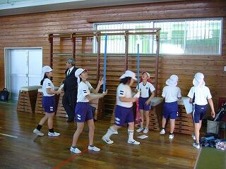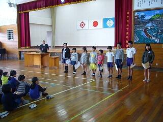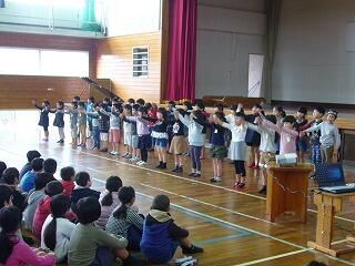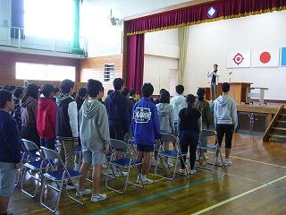 まず、体育館でお別れ集会です。