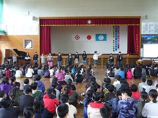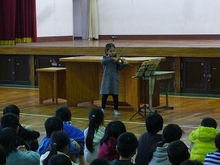 二人目の児童は、自分が頑張ってきたことの一つにバイオリンを挙げ、そして、実際に演奏してくれました。全校児童の前で大変堂々と演奏しました。その音色にみんなうっとりとしていました。まるでコンサートに来ているようでした。堂々とした作文発表とバイオリンの演奏、どちらもすばらしかったです。