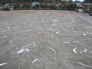 運動場の砂が、強い北風で舞い上がらないようにまきました。