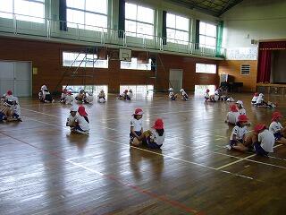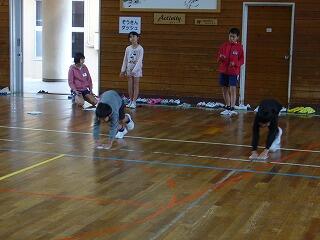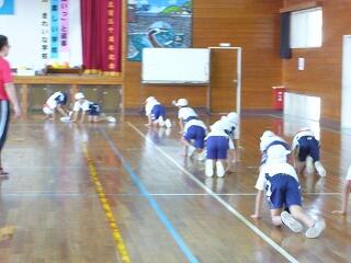 次に、それぞれのコーナーに子どもたちが行き、体作りの運動を始めました。