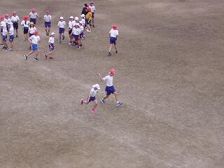 運動場を見ると、6年生が元気よく運動場を走っていました。