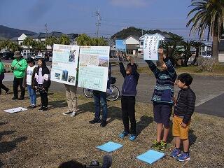 本校では、毎年5年生が、総合的な学習の時間に油津の歴史、文化等について調べてまとめ、油津地域協議会主催の『”へぇ~””ほぉ~”まちあるき』で発表したり、油津のよさをアピールしたりしてきました。