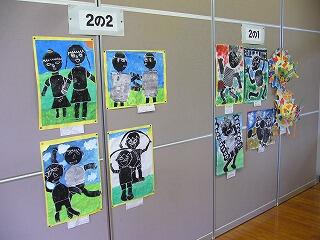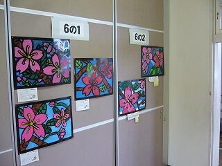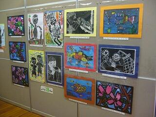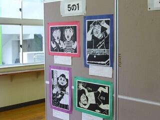 参観日に御覧になった保護者の皆さんもいらっしゃると思いますが、作品展示室に版画の作品が掲示してあります。
