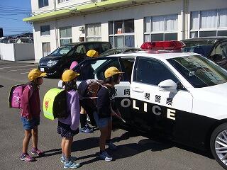 子どもたちは、かっこいいパトカーに大喜びでした。