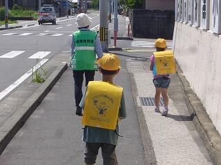 下校にあわせて主任児童委員の方が来て、児童とともに下校してくださいました。