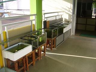 それをのぞくと、背中に輝く水色の線が通ったようなきれいな魚がたくさんいます。