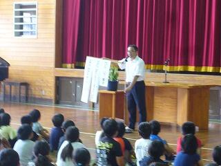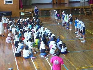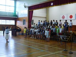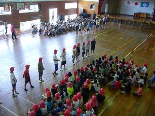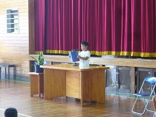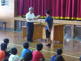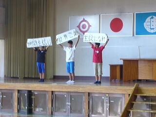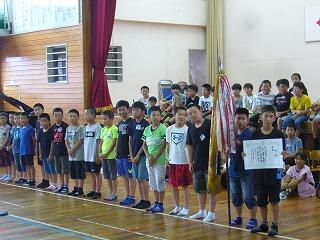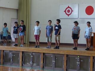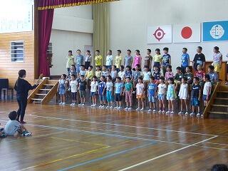 先日の終業式では、代表児童の健闘を祈って全校生徒で拍手をしました。
