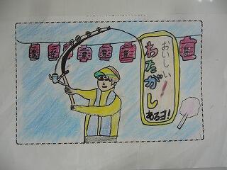 その綿菓子には、子どもたちが描いた絵が貼られています。