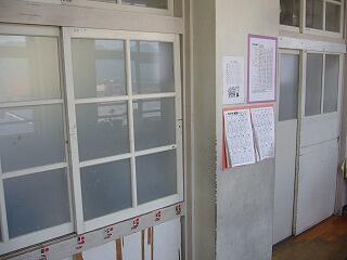 廊下から教室内を見ようとしても、戸が閉め切ってあり見えません。