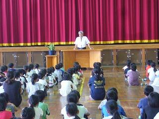 この絶好の水泳日和に3・5・6年生のプール開きがありました。