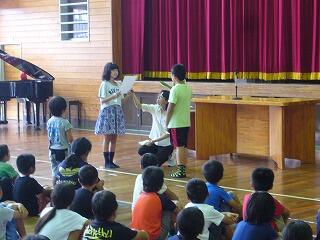 各学級ごとに、読書通帳の記録のページ数が多い子ども、学校図書館で借りた本の冊数が多い子どもが表彰されました。