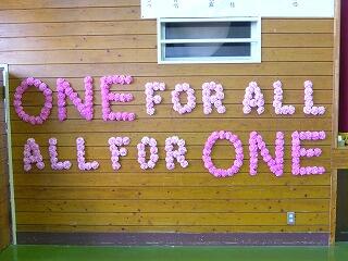 4月の始業式で、校長先生が「ONE For ALL,ALL For ONE」の話をされました。
