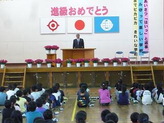 まず、校長先生が、「命を大切にすること」「雨だれ石をうがつ」などの話をしてくださいました。
