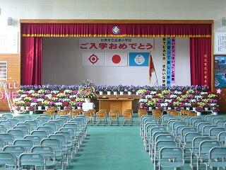 体育館に、きれいな造花でこの言葉が掲示されました。