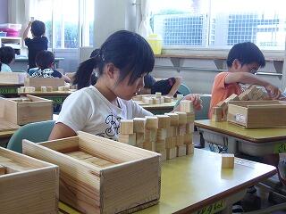 先生が言われたように消しゴムや鉛筆、定規を机の上にきれいに並べたり、一緒に活動したりする姿が大変真剣な上にかわいかったです。
