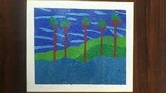1日目に描いていた下絵をカッターで切ってはがし、その上に色がついた砂をのせていきます。 切る作業に慣れるまでは難しそうでしたが、さすが子どもたちです。