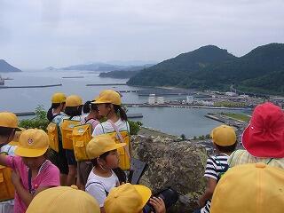 津の峯から油津や日南の様子を見て、子どもたちは、