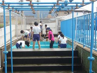 プール掃除をしていると聞いた下級生も、水泳が間近になりワクワクしているようです。