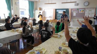 豚肉生産者の方に来ていただき、お話を聞き、給食を一緒に食べました。