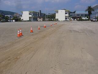 学校の運動場は200mトラックで、運動公園陸上競技場は400mトラックです。ですから、走る感覚も違いますし、走り方も違ってきます。
