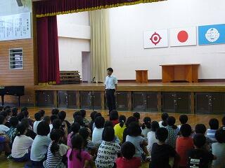 次に、校長先生から「危険予知能力を身につけましょう。」「2学期は行事が多いので、しっかりと目標をもって頑張りましょう。」などのお話がありました。