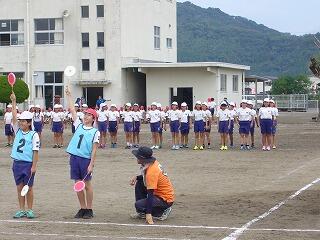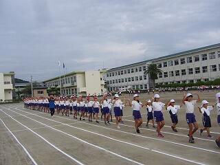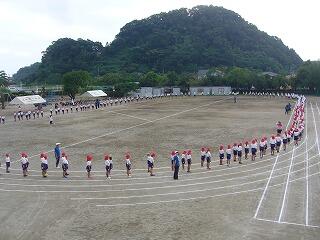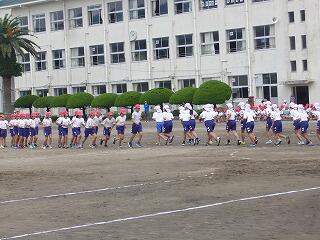 行進、開会式、ラジオ体操、退場等の練習をしました。